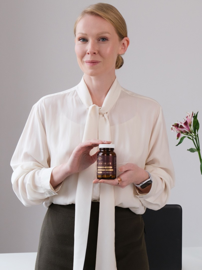 Sacred Cherish Life supports hormonal wellness for women of all ages, helping to reduce PMS and menopausal symptoms while improving mood and libido.
