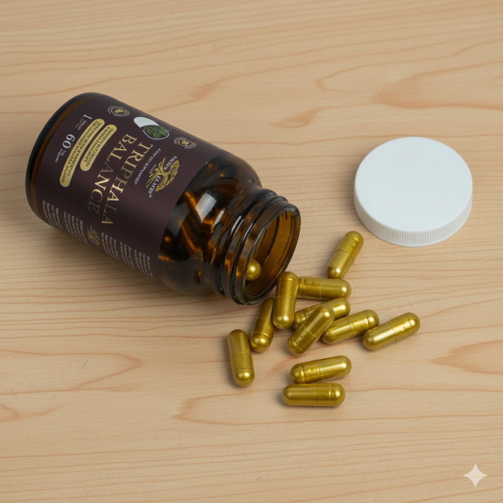 TRIPHALA BALANCE combines traditional Ayurvedic botanicals with clinically supported prebiotic and probiotic ingredients.
