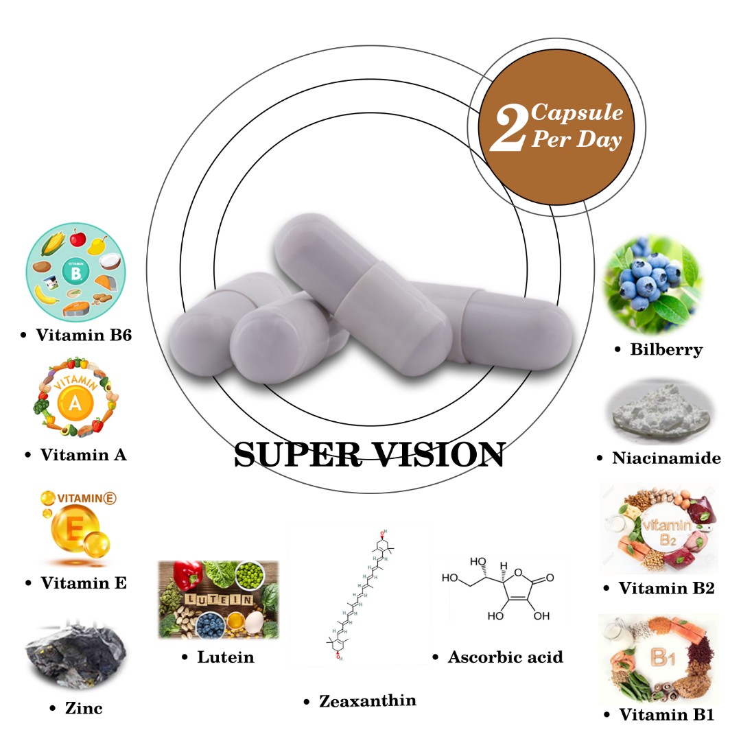 Продукт поддерживает зрение благодаря синергии витаминов, антиоксидантов и растительных экстрактов.